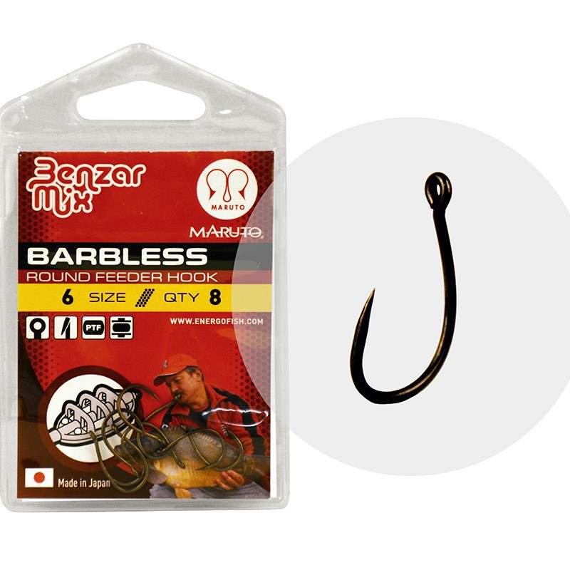 Benzar Round Feeder Barbless sunt carlige cu ochet si fara barbeta dedicate pescuitului la feeder. Acestea dispun de curbura rotunda si tija scurta, fiind solutia ideala atunci cand se folosesc monturi hair rig sau cu spin de momeala, wafter sau popup, sau orice alta momeala care se scufunda.