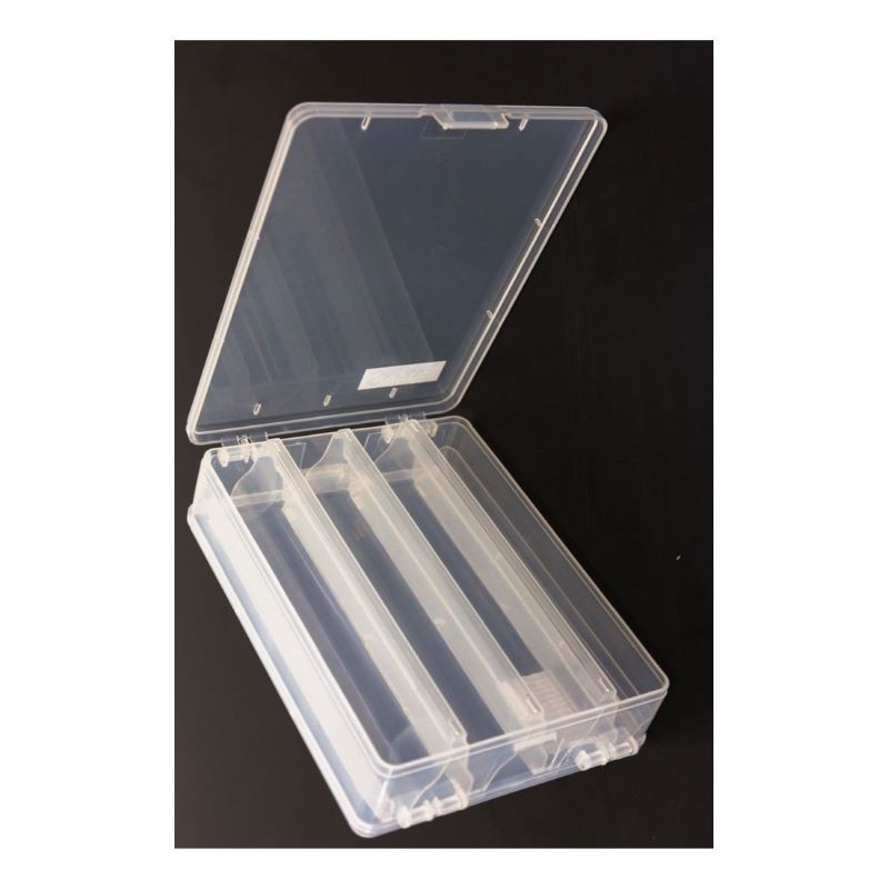 Cutia medie pentru naluci cu 2 fete, 7 compartimente este un recipient dublu fabricat din plastic rezistent la coroziunea cauzata de apa, recomandat pentru depozitarea nalucilor de spinning. Dimensiunile generoase ale cutiei (15x20x5cm) permit stocarea comoda a nalucilor. Locurile speciale sunt prevazute cu caneluri ce asigura pozitionarea sigura a nalucilor. Sistemul de inchidere etans, echipat cu clapete din plastic rigid, este foarte rezistent la manipularile repetate, protejand eficient interiorul impotriva umezelii si a socurilor mecanice. Materialul transparent al cutiei permite o identificare rapida a continutului.
