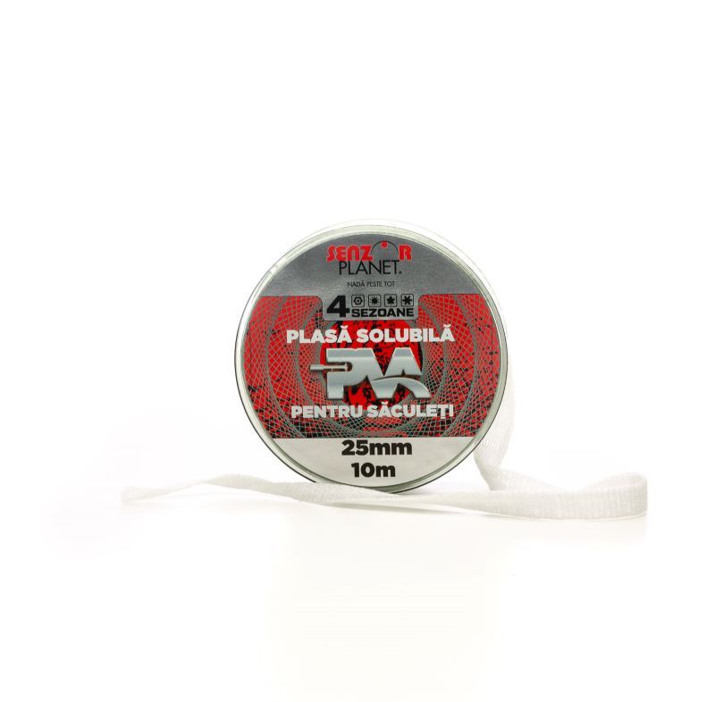 Plasa PVA este indispensabila in productia saculetilor solubili, fiind perfecta pentru nadirea precisa in apropierea carligului. Aceasta plasa este fabricata din fibre speciale care rezista la manipulare repetata si se dizolva instantaneu in contact cu apa. Ideala pentru utilizare in toate cele patru sezoane.