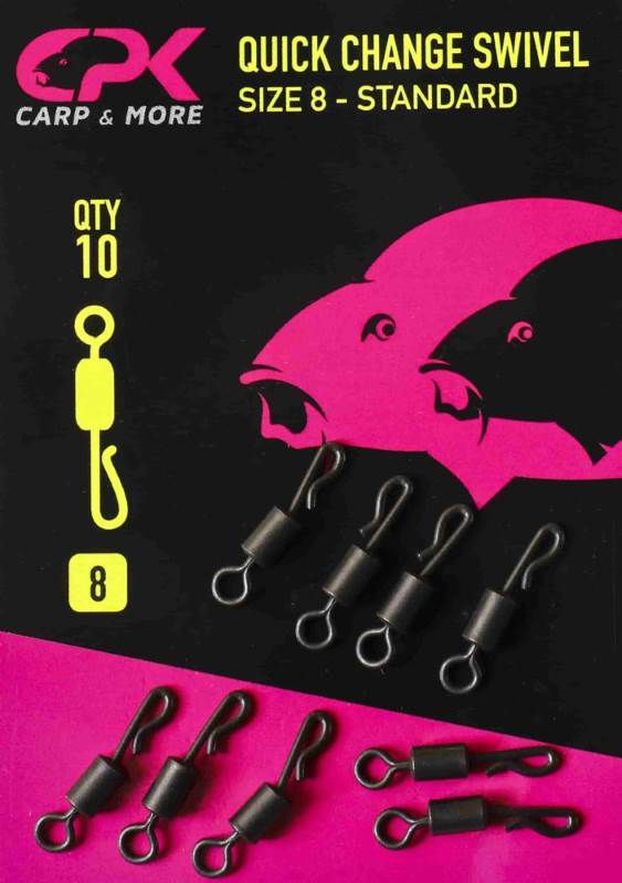 Vartejul cu agrafa rapida de tip Quick Change se distinge prin rezistenta sa semnificativa la tractiune, prevenind astfel rasucirea firului si deteriorarea acestuia. Acest lucru se datoreaza finisajului exceptional si libertatii de miscare oferite de vartej. Este o alegere recomandata pentru realizarea partii terminale la monturile destinate pescuitului la crap sau feeder. Agrafa de schimbare rapida permite modificarea rigurilor cu rapiditate, fara a afecta montura. Finisajul sau negru mat asigura o camuflare perfecta atat in coloana de apa, cat si pe substrat.