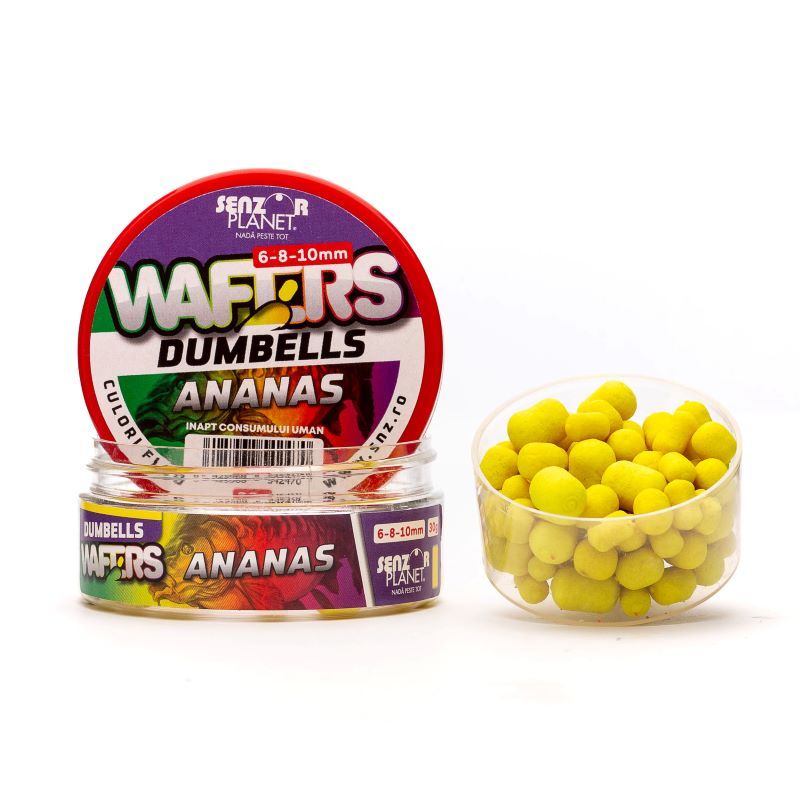 Wafters Senzor Dumbells sunt momeli de mare atractie, usor flotante, ce combina culorile fluo cu arome irezistibile, asigurand astfel o prezentare vizuala si olfactiva remarcabila pentru pesti.